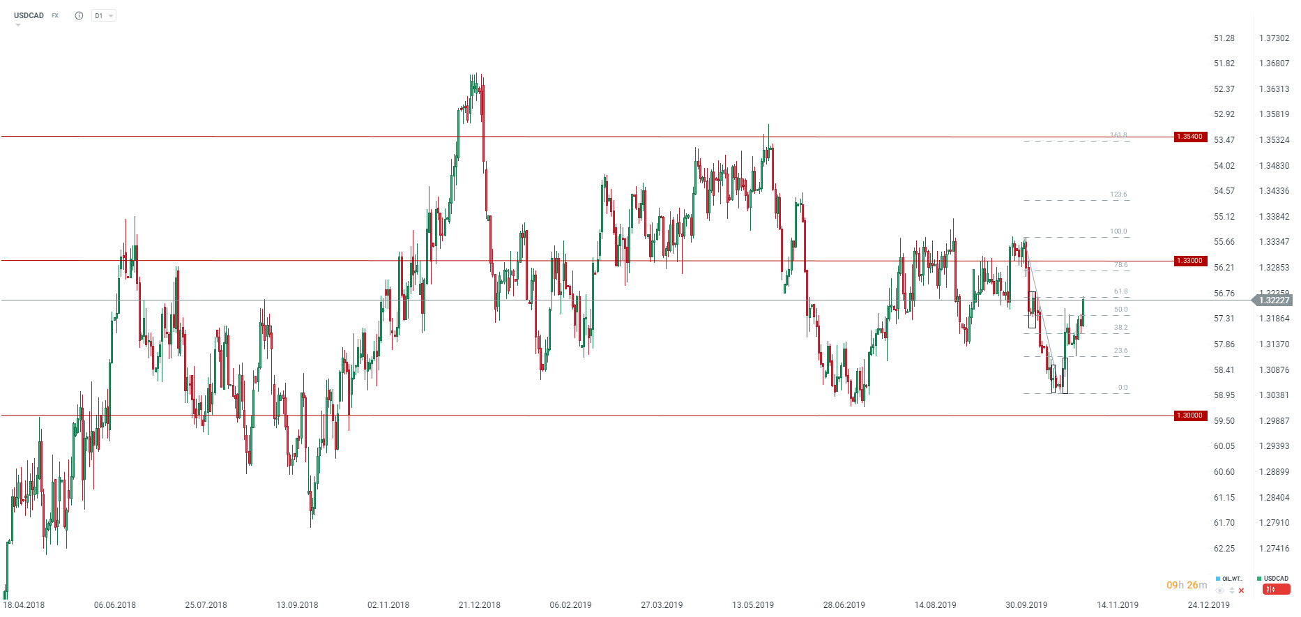 USDCAD silnie odbija po raporcie z rynku pracy. Widać, że para odrobiła już prawie 2/3 ostatnich strat. Źródło: xStation5
