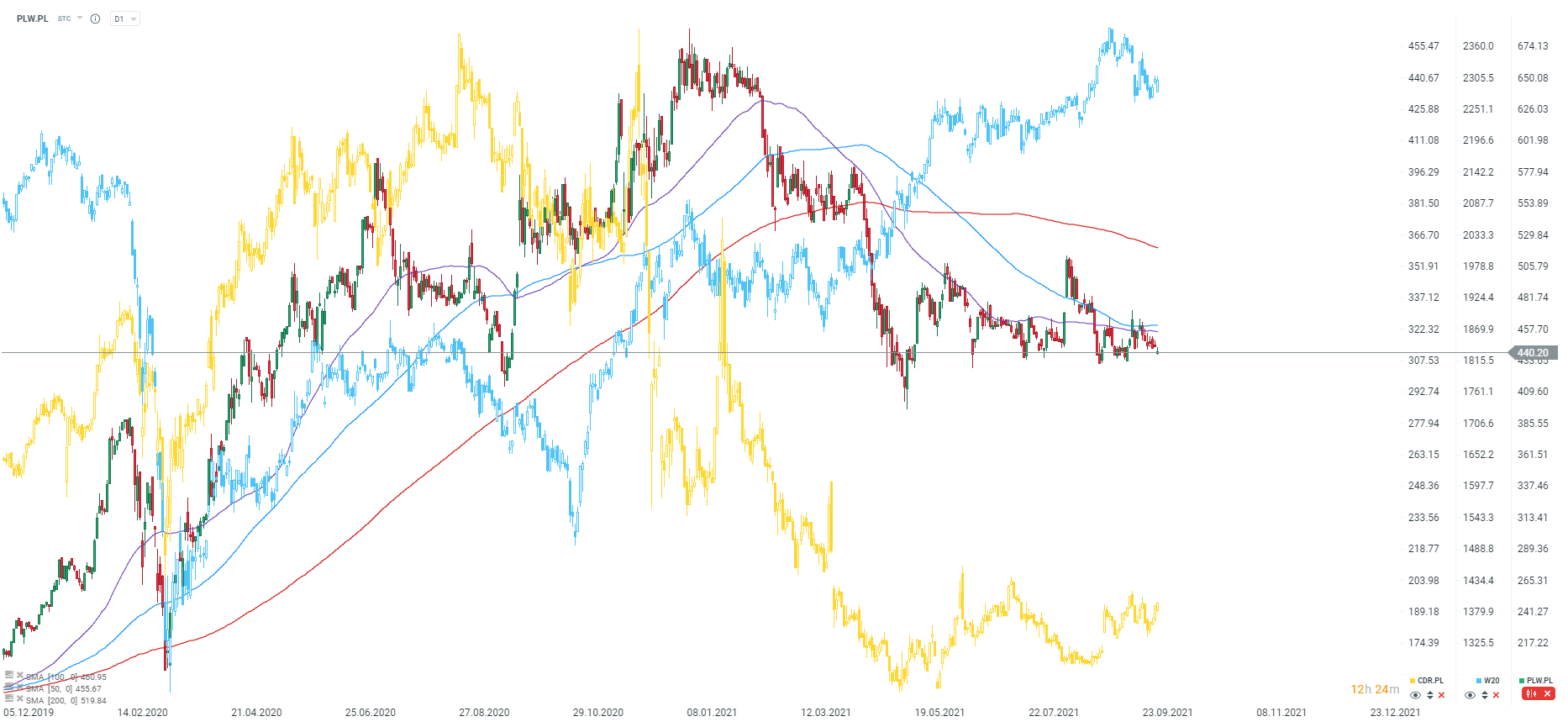 PlayWay opublikował wyniki za II kwartał tego roku. Spółka gamingowa, a w zasadzie spółka, która zrzesza wiele zespołów zajmujących się produkcjami gier zaliczyła zysk na poziomie niemal 26 mln zł, przy 128 mln w analogicznym okresie rok wcześniej. Akcje otwierają się luką spadkową i obecnie notowane są ok. 1,8% niżej niż wczorajsze zamknięcie. Cena akcji notowana jest wyraźnie poniżej średniej 50 oraz 100 sesyjnej. Jednocześnie warto zauważyć, że akcje nie zaliczyły tak spektakularnego spadku jak w przypadku CD Projetk. Wciąż jednak w ujęciu rocznym akcje tracą ok. 30%.