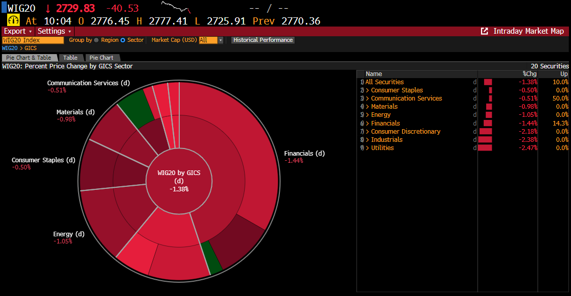 Dodatkowe zmartwienia inwestorom dostarcza sektor surowcowo-energetyczny, słabe odczyty PMI z polskiego przemysłu oraz niepewność co do dalszej polityki NBP. Największymi przegranymi na GPW w ostatnim czasie, poza bankami, jest sektor energetyczny. Dużą rolę w tym odgrywa Tauron, który opublikował rozczarowujące wyniki w piątek, co spowodowało załamanie kursu i pociągnęło w dół cały sektor.