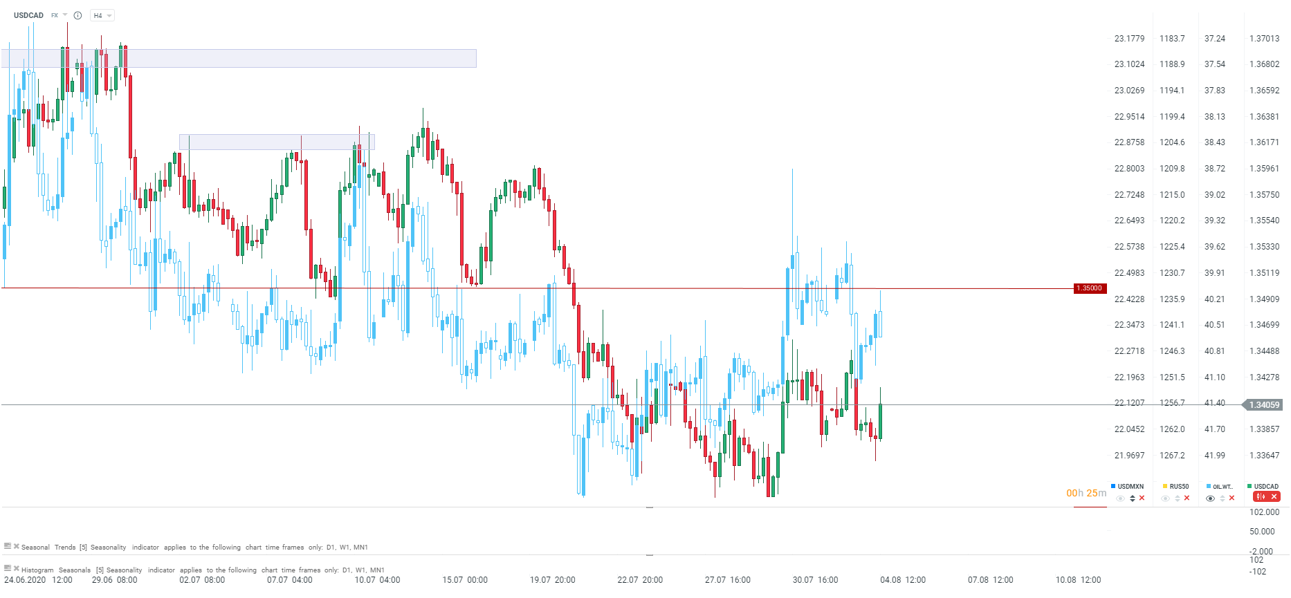Indeks PMI dla przemysłu w Kanadzie, wg RBC wypada na poziomie 52,9 punktów przy poprzednim odczycie 47,8 punktów. Waga tego wskaźnika jest jednak nieco mniejsza niż odczyt Ivey PMI, który poznamy 7 sierpnia. Oczekiwania wskazują na niewielki spadek Ivey PMI do ok. 57 punktów, ale z dosyć wysokiego poziomu 58 punktów.
