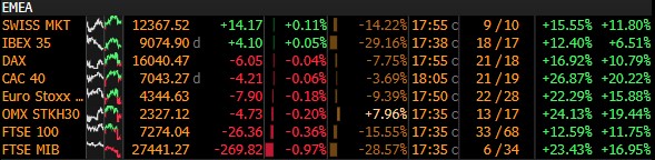 “Wygrani” i “przegrani” dzisiejszej sesji w Europie. Źródło: Bloomberg