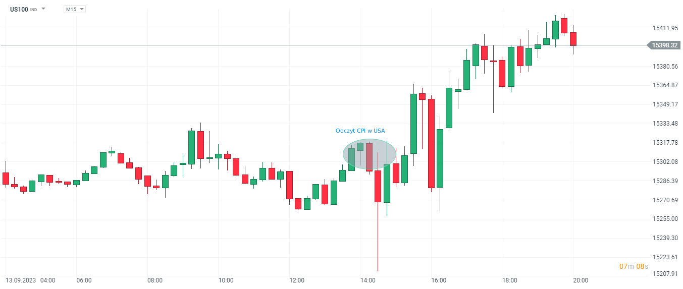 - Wydarzeniem makro dnia bez wątpienia był odczyt inflacji CPI w USA, który mimo wyższego wskazania, wydaje się nie zmieniać oczekiwań inwestorów względem następnego posiedzenia FOMC w sprawie stóp procentowych. Dla przypomnienia, wycena rynku pieniężnego daje obecnie 95% prawdopodobieństwo, że FED zdecyduje się na utrzymanie stóp procentowych na tym samym poziomie.