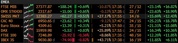 “Wygrani” i “przegrani” dzisiejszej sesji w Europie. Źródło: Bloomberg