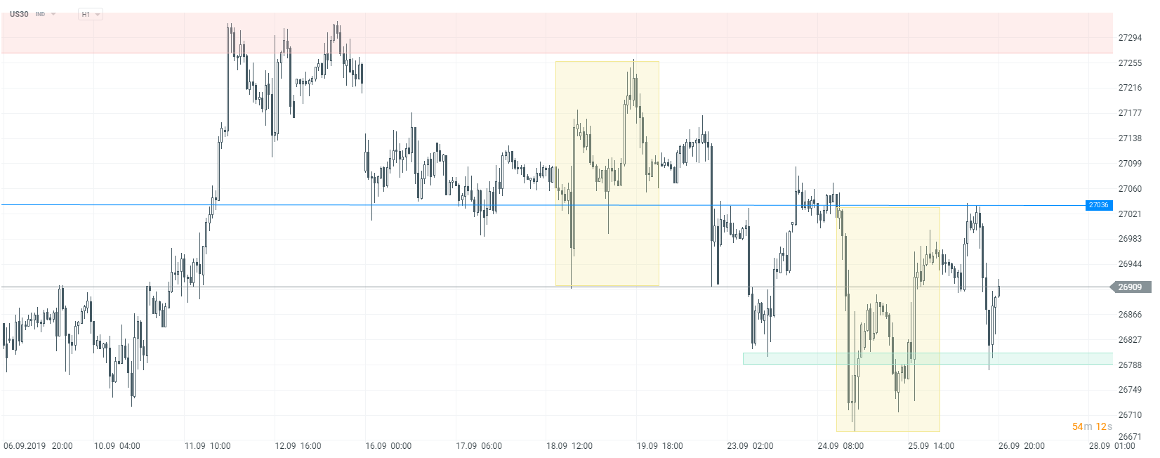 Potencjalna pro wzrostowa formacja oRGR na US30 . Z drugiej strony opór w postaci układu 1:1. Źródło: xStation5.