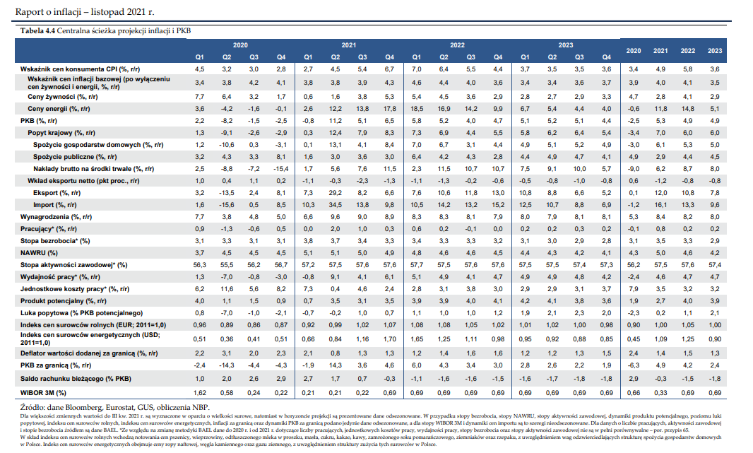 Źródło: Raport o inflacji, listopad 2021 r., Narodowy Bank Polski