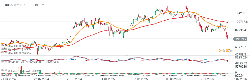 - Bitcoin potężnie traci testując okolice 72,5 tys. USD - najniższe od początku listopada 2024 roku, gdy Donald Trump wygrał wybory, budząc nadzieje na długoterminową hossę i przełomowe, przyjazne kryptowalutom regulacje. Kurs drugiej największej kryptowaluty, Ethereum traci 10% i spada do 2100 USD.