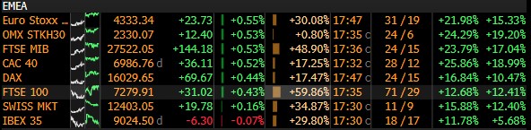“Wygrani” i “przegrani” dzisiejszej sesji w Europie. Źródło: Bloomberg