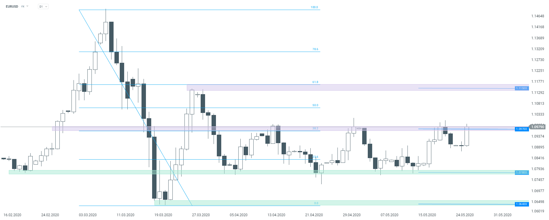 We wtorek na rynek po długim weekendzie wrócili inwestorzy z USA i Wielkiej Brytanii. Rynkowy sentyment nie uległ zmianie, od początku tygodnia ryzykowne aktywa cieszą się popularnością, na rynku akcji notowane są solidne wzrosty. Optymizm jest napędzany przez pozytywne informacje dotyczące badań nad lekiem na koronawirusa oraz przez to, że coraz większa liczba krajów decyduje się na zdejmowanie kolejnych obostrzeń.