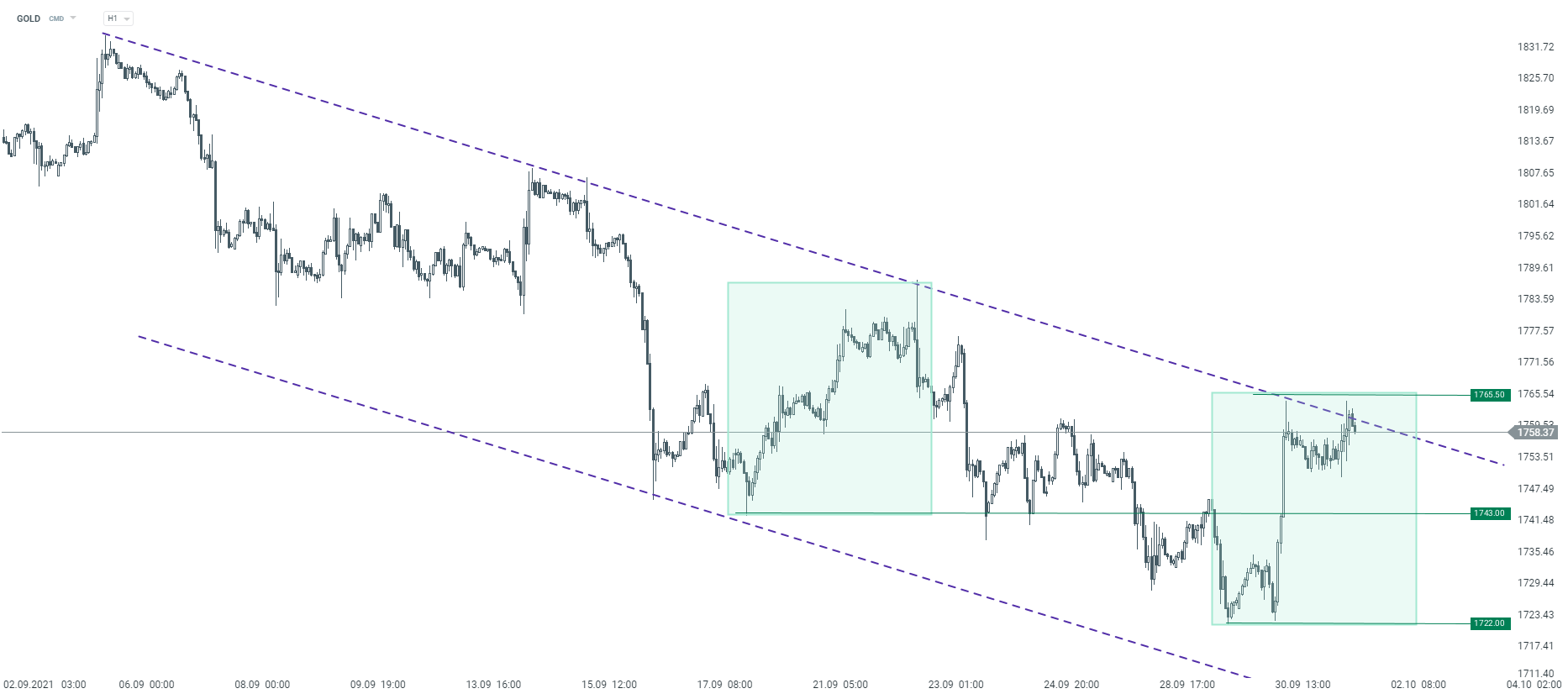 GOLD interwał H1. Źródło: xStation