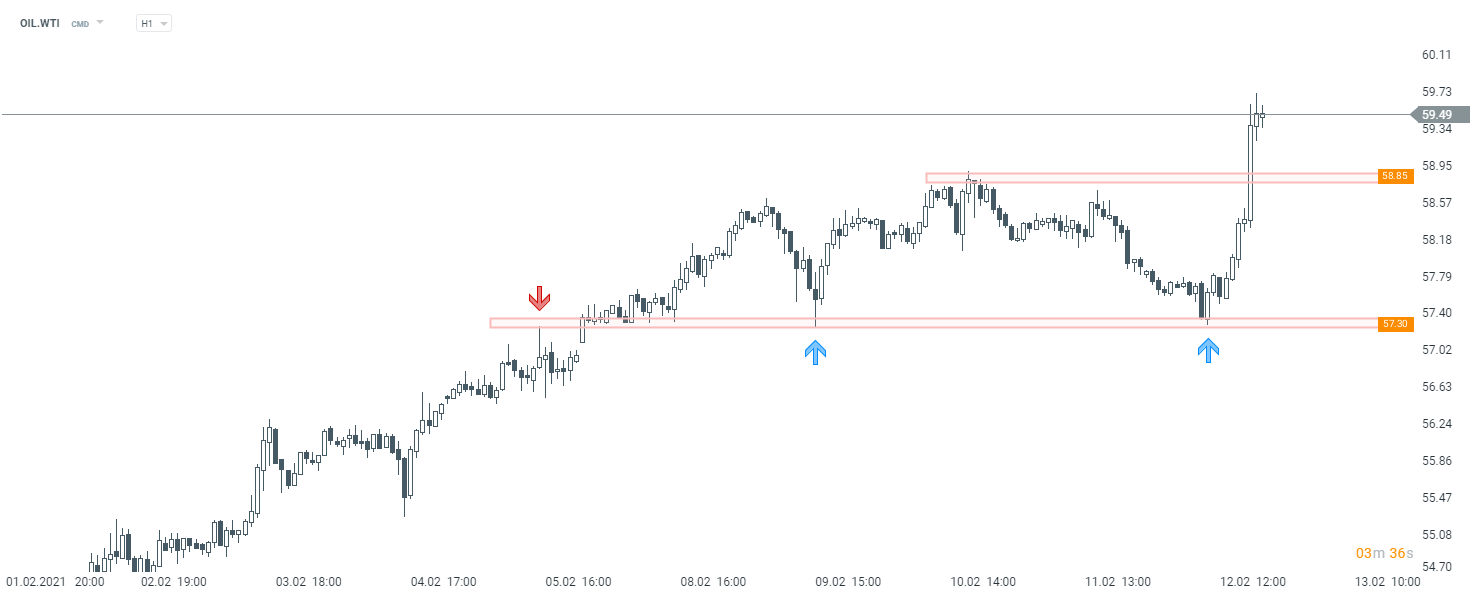 Ropa WTI kontynuuje ruch w ramach trendu wzrostowego ustanawiając nowe po popandemiczne szczyty. Źródło: xStation5
