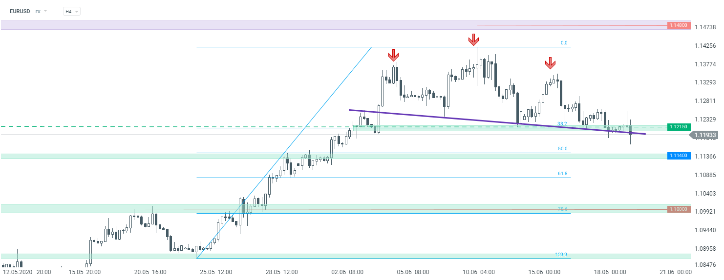EURUSD balansuje na linii szyi układu RGR. Na określenie kierunku przyjdzie nam poczekać do nowego tygodnia. Źródło: xStation5