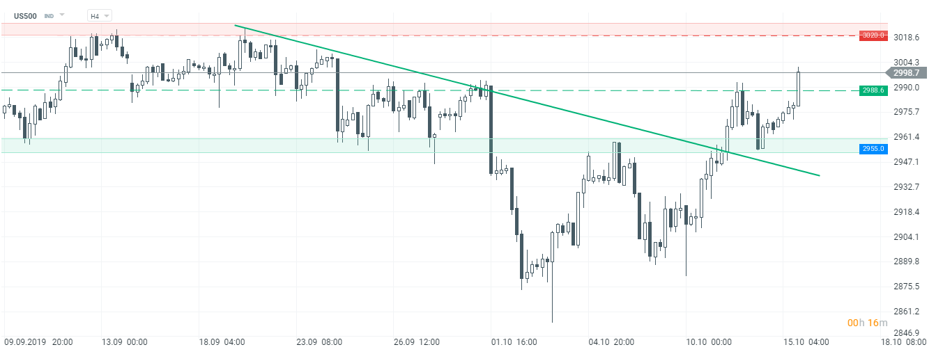 Rynek akcji również korzystał dziś na dobrych nastrojach pomimo, że wstępne porozumienie pomiędzy Stanami Zjednoczonymi, a Chinami ma zostać dopiero podpisane. Zapewnienia Donalda Trumpa powodują że indeksy w Ameryce kontynuują wzrosty. Inwestorzy nie przejmują się nawet informacjami z Chin, z których wynika, że Pekin podpisze porozumienie ale dopiero gdy USA zrezygnują z części opłat celnych. Na dzisiejszej sesji widać solidne wzrosty w sektorze medycznym, rosną również spółki technologiczne. W godzinach wieczornych indeksy znajdują się na plusie przekraczającym 1%, najsilniej rośnie Nasdaq, gdzie gdzie ruch przekracza 1,3%. Z kolei patrząć technicznie na S&P500, niewiele brakuje do historycznych szczytów, kurs znajduje się tuż poniżej 3000 pkt.