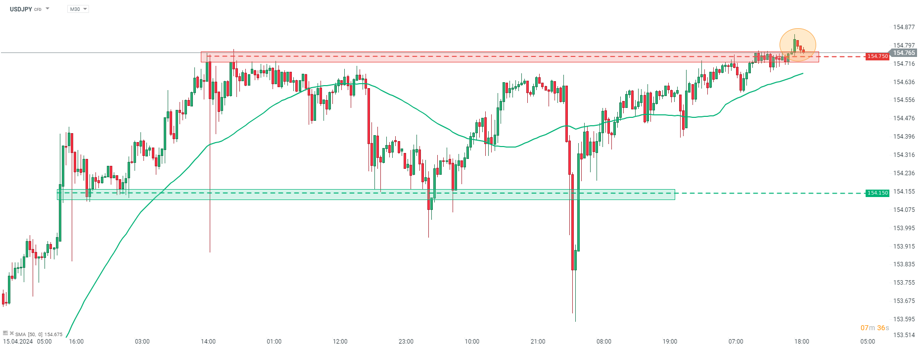 USDJPY przeskoczył dziś strefę oporu 154,75 i osiągnął nowe 34-letnie maksimum! Źródło: xStation5