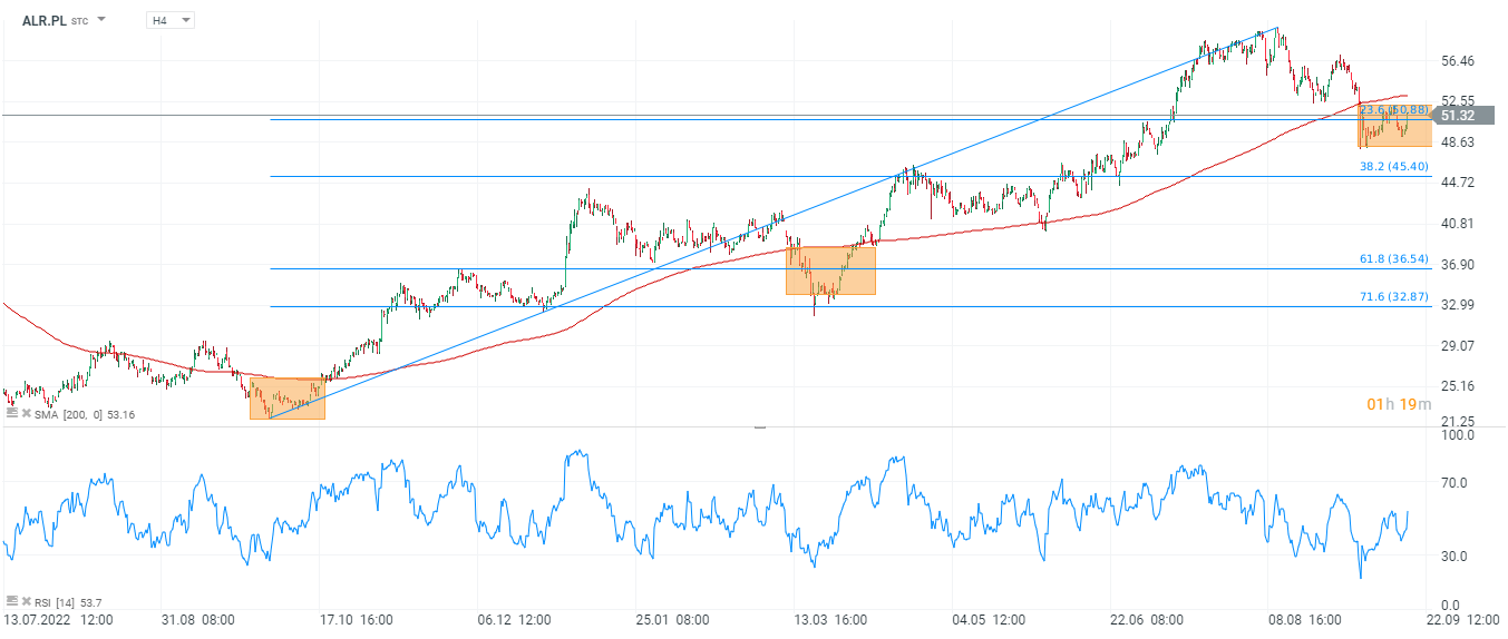 Akcje Alior Banku (ALR.PL), interwał H4. Źródło: xStation5