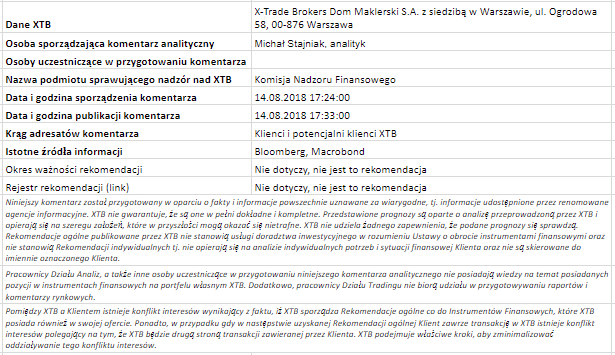 Ta publikacja handlowa jest informacyjna i edukacyjna. Nie jest rekomendacją inwestycyjną ani informacją rekomendującą lub sugerującą strategię inwestycyjną. W materiale nie sugerujemy żadnej strategii inwestycyjnej ani nie świadczymy usługi doradztwa inwestycyjnego. Materiał nie uwzględnia indywidualnej sytuacji finansowej, potrzeb i celów inwestycyjnych klienta. Nie jest też ofertą sprzedaży ani subskrypcji. Nie jest zaproszeniem do nabycia, reklamą ani promocją jakichkolwiek instrumentów finansowych. Publikację handlową przygotowaliśmy starannie i obiektywnie. Przedstawiamy stan faktyczny znany autorom w chwili tworzenia dokumentu. Nie umieszczamy w nim żadnych elementów oceniających. Informacje i badania oparte na historycznych danych lub wynikach oraz prognozy nie stanowią pewnego wskaźnika na przyszłość. Nie odpowiadamy za Twoje działania lub zaniechania, zwłaszcza za to, że zdecydujesz się nabyć lub zbyć instrumenty finansowe na podstawie informacji z tej publikacji handlowej. Nie odpowiadamy też za szkody, które mogą wynikać z bezpośredniego czy też pośredniego wykorzystania tych informacji. Inwestowanie jest ryzykowne. Inwestuj odpowiedzialnie.