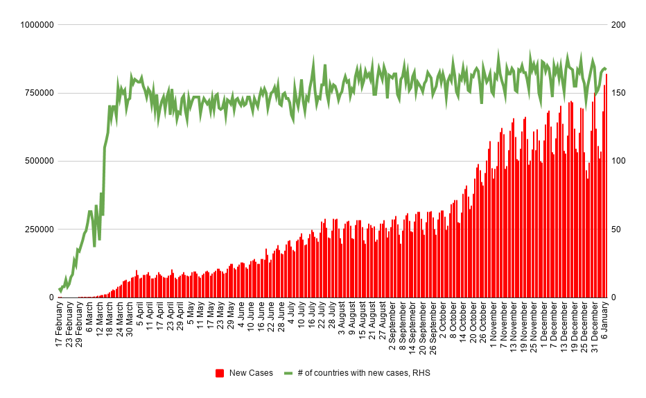 Wczoraj odnotowano 820 tysięcy nowych zakażeń koronawirusem (rekord). Łączna liczba zgonów przekroczyła 1,9 miliona. Źródło: worldometers, XTB
