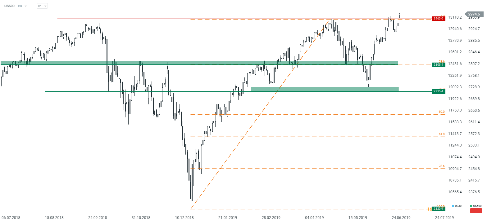 Donald Trump i Xi Jinping doszli do porozumienia, aby nie nakładać nowych ceł, obydwa państwa mają wznowić negocjacje handlowe; poza tym administracja Trumpa wydała pozwolenie na zakup przez Huawei sprzętu od amerykańskich firm - indeksy w Chinach i Japonii zyskują po 2%, kontrakty na DAX i SP500 w górę po około 1%, USD zyskuje o poranku w stosunku do wszystkich walut G10