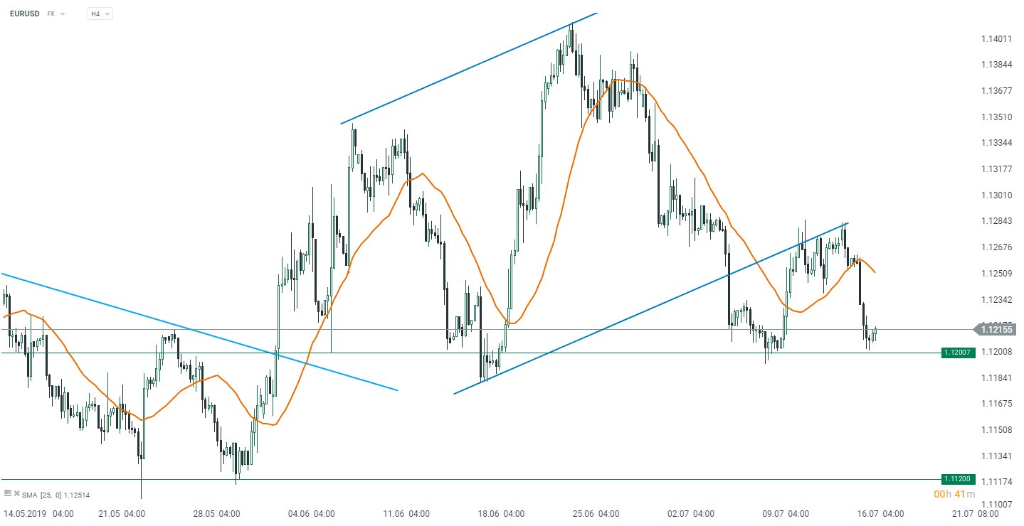Notowania EURUSD usiłują odbić od 1,12 po wczorajszym znacznym spadku. Źródło: xStation5