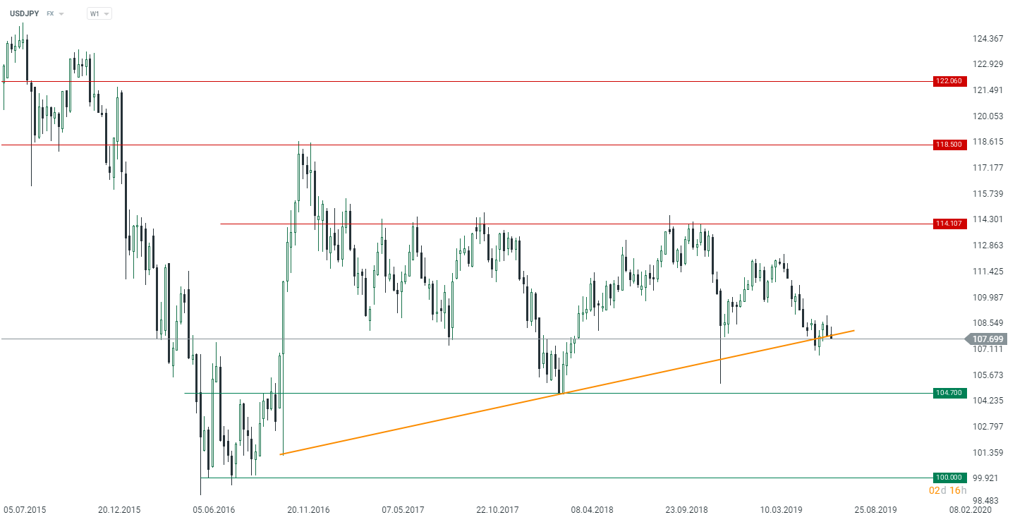 USDJPY wciąż balansuje wokół istotnego poziomu technicznego. Źródło: xStation5
