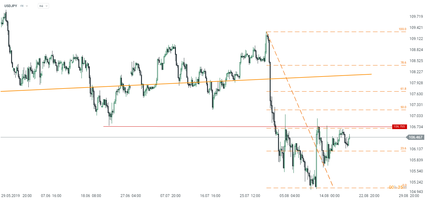 Notowania USDJPY znajdują się lekko ponad kreską w ujęciu dziennym. Kluczowy opór znajduje się na poziomie 106,75. Źródło: xStation5