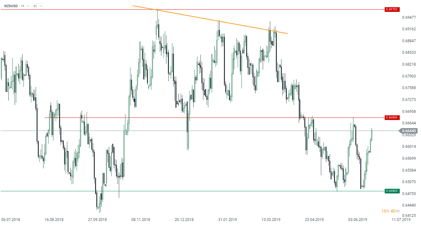 NZDUSD w drodze do poważniejszego oporu zlokalizowanego w pobliżu 0,6680. Źródło: xStation5