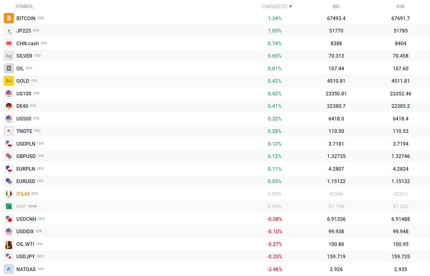 Bitcoin wyróżnia się na tle sesji: +1,36% do ~67 506 USD – krypto korzysta zarówno z apetytów inflacyjnych, jak i z ogólnego odbicia na rynku "risk-on".