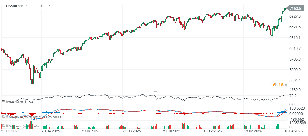 - We wtorek indeks MSCI All Country World Index zyskał 0,1%, wspierany przez słabnące ryzyko geopolityczne oraz powrót entuzjazmu wokół sektora AI, który ponownie napędzał azjatyckie parkiety. Dodatkowo kontrakt na S&P 500, US500 notuje 0,15% wzrost i utrzymuje się w pobliżu 7160 punktów.