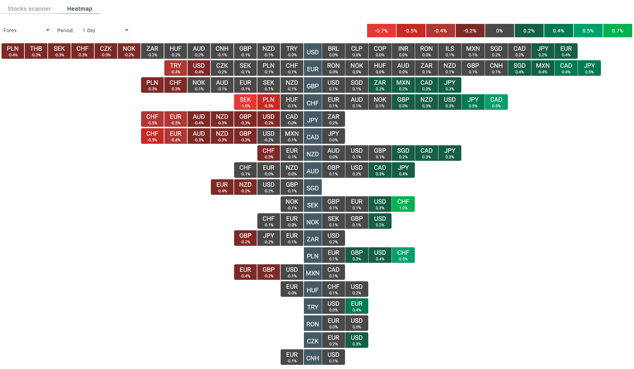- W ogólnym rozchranku na rynku Forex najlepiej radzi sobie obecnie jen oraz dolar kanadyjski.Straty dominują na franku oraz dolarze australijskim.