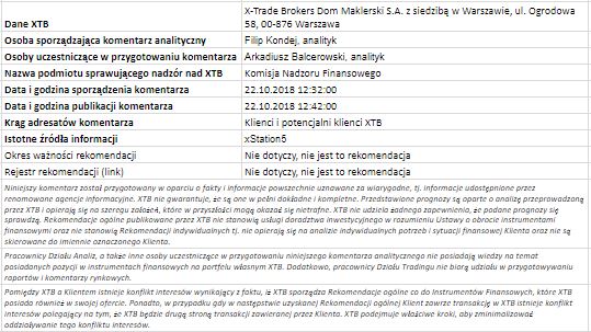 Ta publikacja handlowa jest informacyjna i edukacyjna. Nie jest rekomendacją inwestycyjną ani informacją rekomendującą lub sugerującą strategię inwestycyjną. W materiale nie sugerujemy żadnej strategii inwestycyjnej ani nie świadczymy usługi doradztwa inwestycyjnego. Materiał nie uwzględnia indywidualnej sytuacji finansowej, potrzeb i celów inwestycyjnych klienta. Nie jest też ofertą sprzedaży ani subskrypcji. Nie jest zaproszeniem do nabycia, reklamą ani promocją jakichkolwiek instrumentów finansowych. Publikację handlową przygotowaliśmy starannie i obiektywnie. Przedstawiamy stan faktyczny znany autorom w chwili tworzenia dokumentu. Nie umieszczamy w nim żadnych elementów oceniających. Informacje i badania oparte na historycznych danych lub wynikach oraz prognozy nie stanowią pewnego wskaźnika na przyszłość. Nie odpowiadamy za Twoje działania lub zaniechania, zwłaszcza za to, że zdecydujesz się nabyć lub zbyć instrumenty finansowe na podstawie informacji z tej publikacji handlowej. Nie odpowiadamy też za szkody, które mogą wynikać z bezpośredniego czy też pośredniego wykorzystania tych informacji. Inwestowanie jest ryzykowne. Inwestuj odpowiedzialnie.