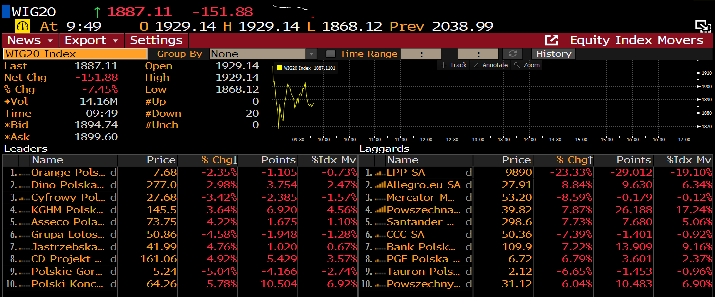Potężne spadki na GPW. Źródło: Bloomberg