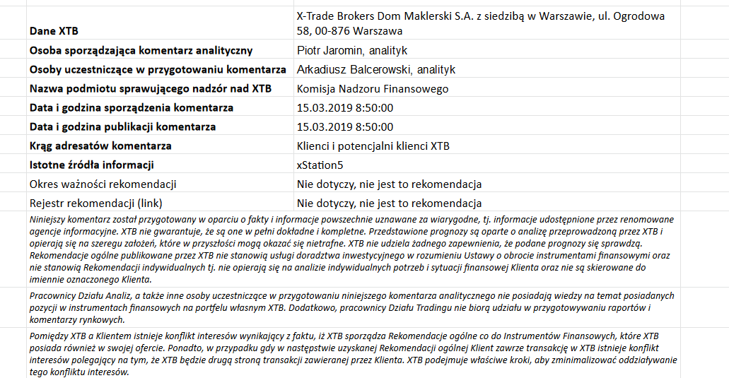 Ta publikacja handlowa jest informacyjna i edukacyjna. Nie jest rekomendacją inwestycyjną ani informacją rekomendującą lub sugerującą strategię inwestycyjną. W materiale nie sugerujemy żadnej strategii inwestycyjnej ani nie świadczymy usługi doradztwa inwestycyjnego. Materiał nie uwzględnia indywidualnej sytuacji finansowej, potrzeb i celów inwestycyjnych klienta. Nie jest też ofertą sprzedaży ani subskrypcji. Nie jest zaproszeniem do nabycia, reklamą ani promocją jakichkolwiek instrumentów finansowych. Publikację handlową przygotowaliśmy starannie i obiektywnie. Przedstawiamy stan faktyczny znany autorom w chwili tworzenia dokumentu. Nie umieszczamy w nim żadnych elementów oceniających. Informacje i badania oparte na historycznych danych lub wynikach oraz prognozy nie stanowią pewnego wskaźnika na przyszłość. Nie odpowiadamy za Twoje działania lub zaniechania, zwłaszcza za to, że zdecydujesz się nabyć lub zbyć instrumenty finansowe na podstawie informacji z tej publikacji handlowej. Nie odpowiadamy też za szkody, które mogą wynikać z bezpośredniego czy też pośredniego wykorzystania tych informacji. Inwestowanie jest ryzykowne. Inwestuj odpowiedzialnie.