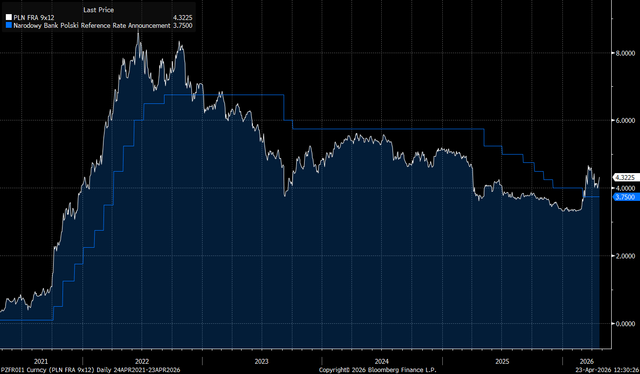 Polska: RPP zaostrza kurs. Przez gigantyczny deficyt (7,3% PKB) i szok naftowy, rynek wycenia podwyżki stóp zamiast obniżek (inflacja może dobić do 5% w III kwartale).