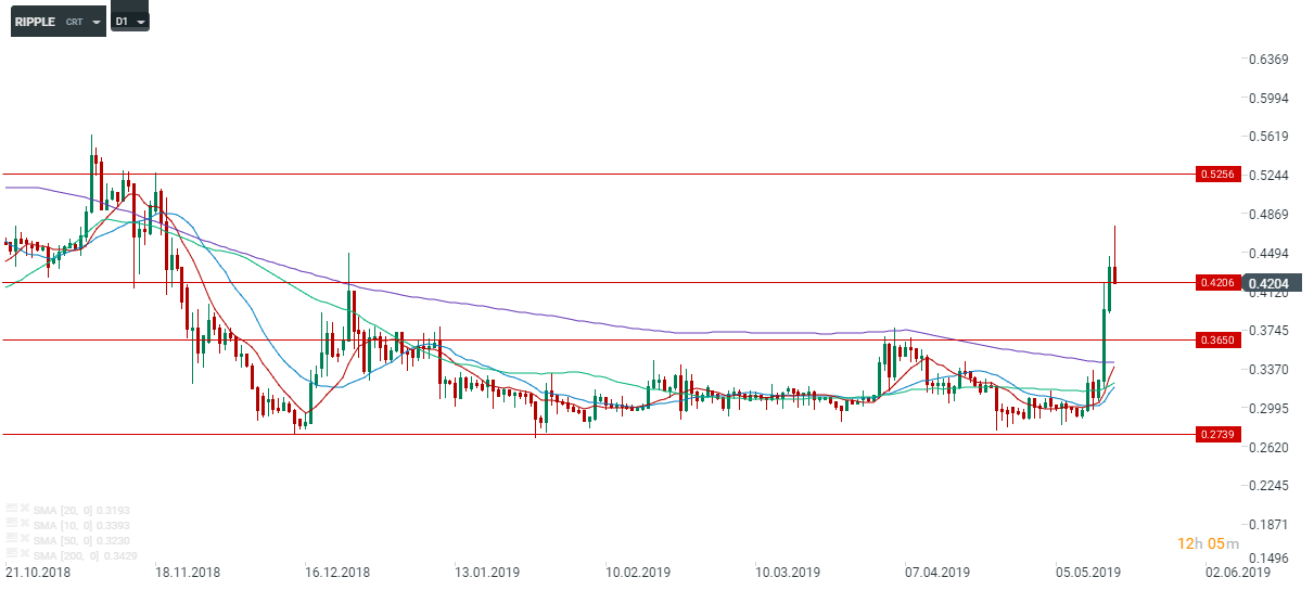 Ripple nieco spowalnia po spektakularnych wzrostach. Źródło: xStation5