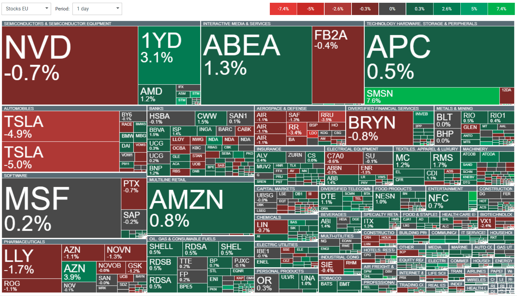 Inwestorzy zachowują się ostrożnie, ale nie panikują. Stoxx 600 krąży w okolicach lokalnych maksimów z ostatnich trzech tygodni, podczas gdy DAX porusza się w wąskim przedziale wokół 23 400 pkt.