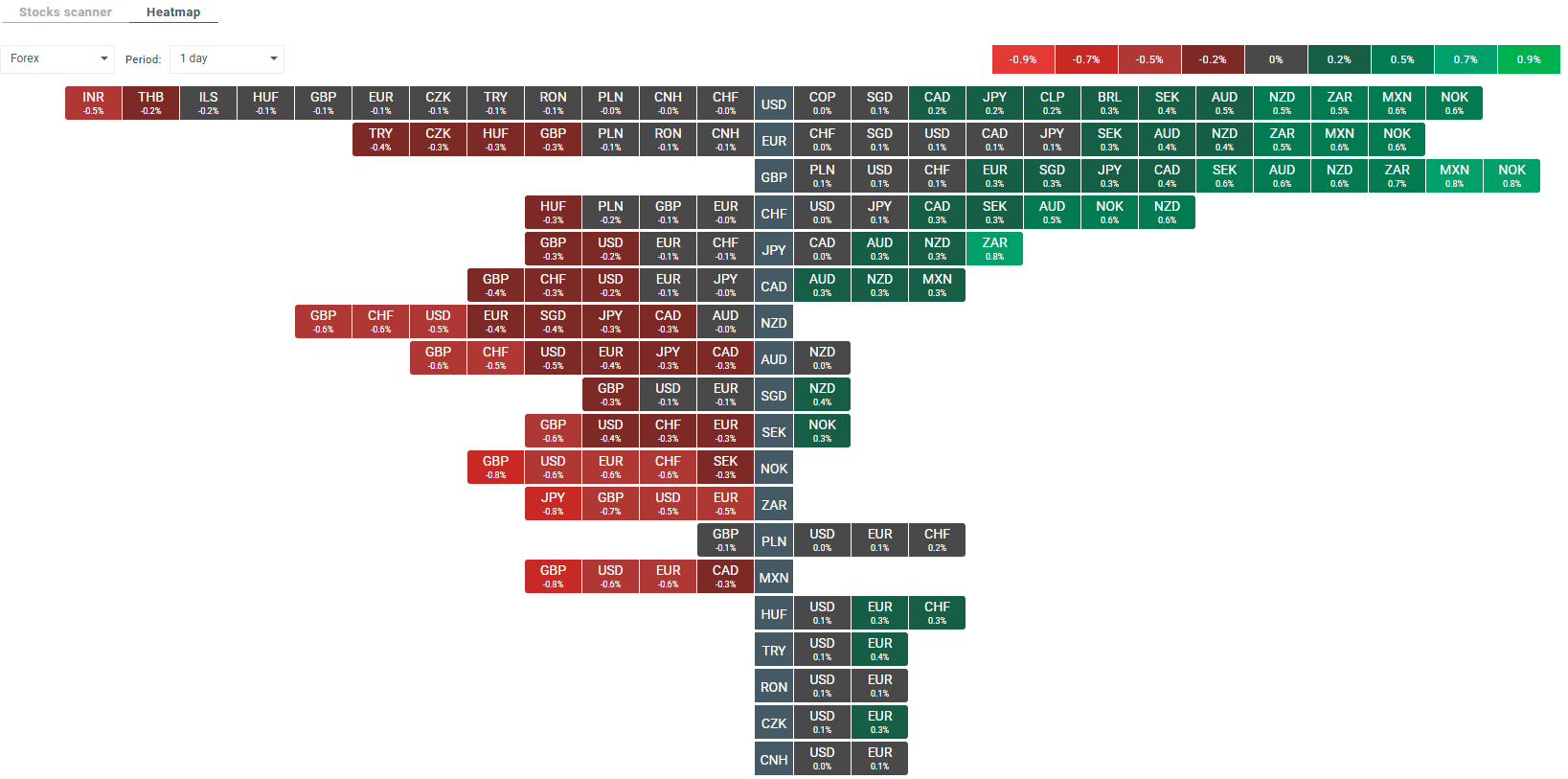 Heatmapa zmienności na rynku FX w chwili obecnej.Źródło: xStation
