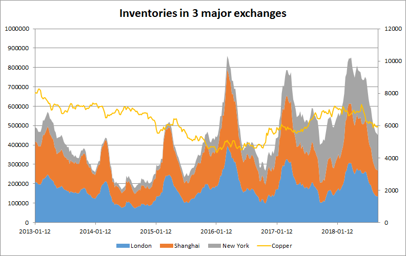 - Z drugiej strony wyraźny spadek zapasów w ostatnim czasie, głównie w Londynie