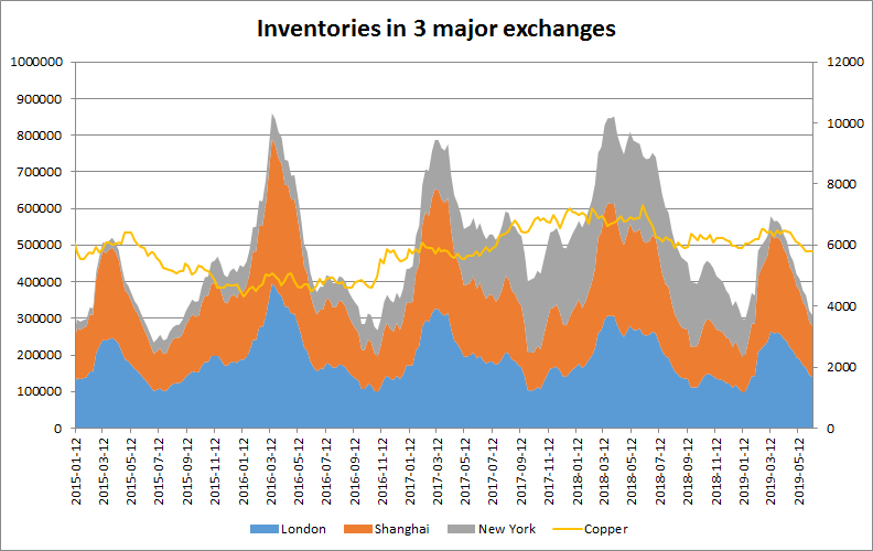 - Relatywnie niskie zapasy miedzi na giełdach