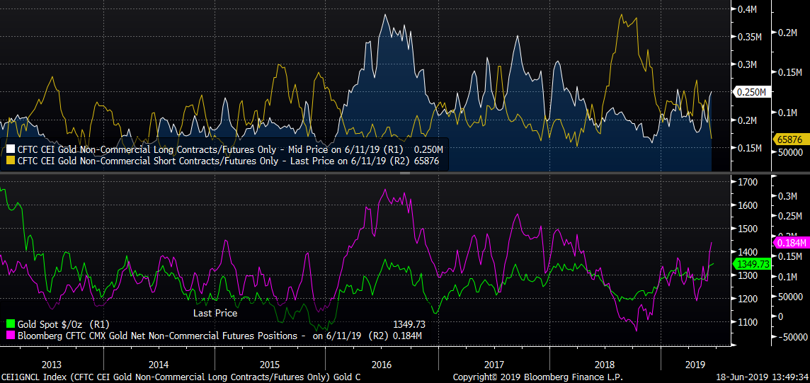 Pozycjonowanie netto wybija szczyty z bieżącego roku, co daje potencjalnie szanse na dalsze odbicie cen. Źródło: Bloomberg