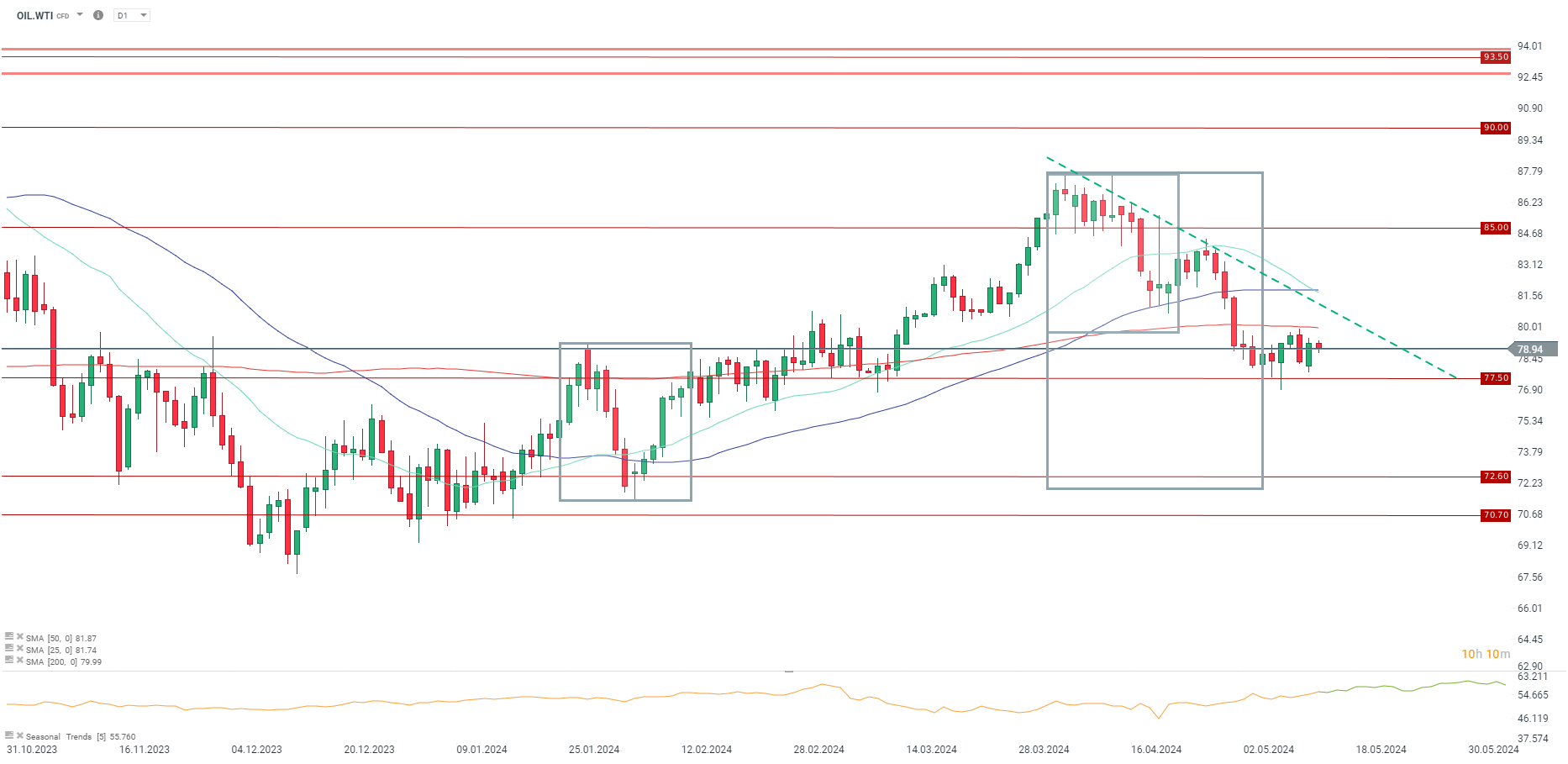 Ropa WTI pozostaje w konsolidacji. Źródło: xStation5