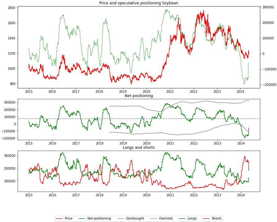 - Następuje również spory spadek krótkich pozycji na soi oraz przyrost pozycji długich, co powoduje potężne odbicie pozycji netto. Te pozostają jednak wciąż ujemne