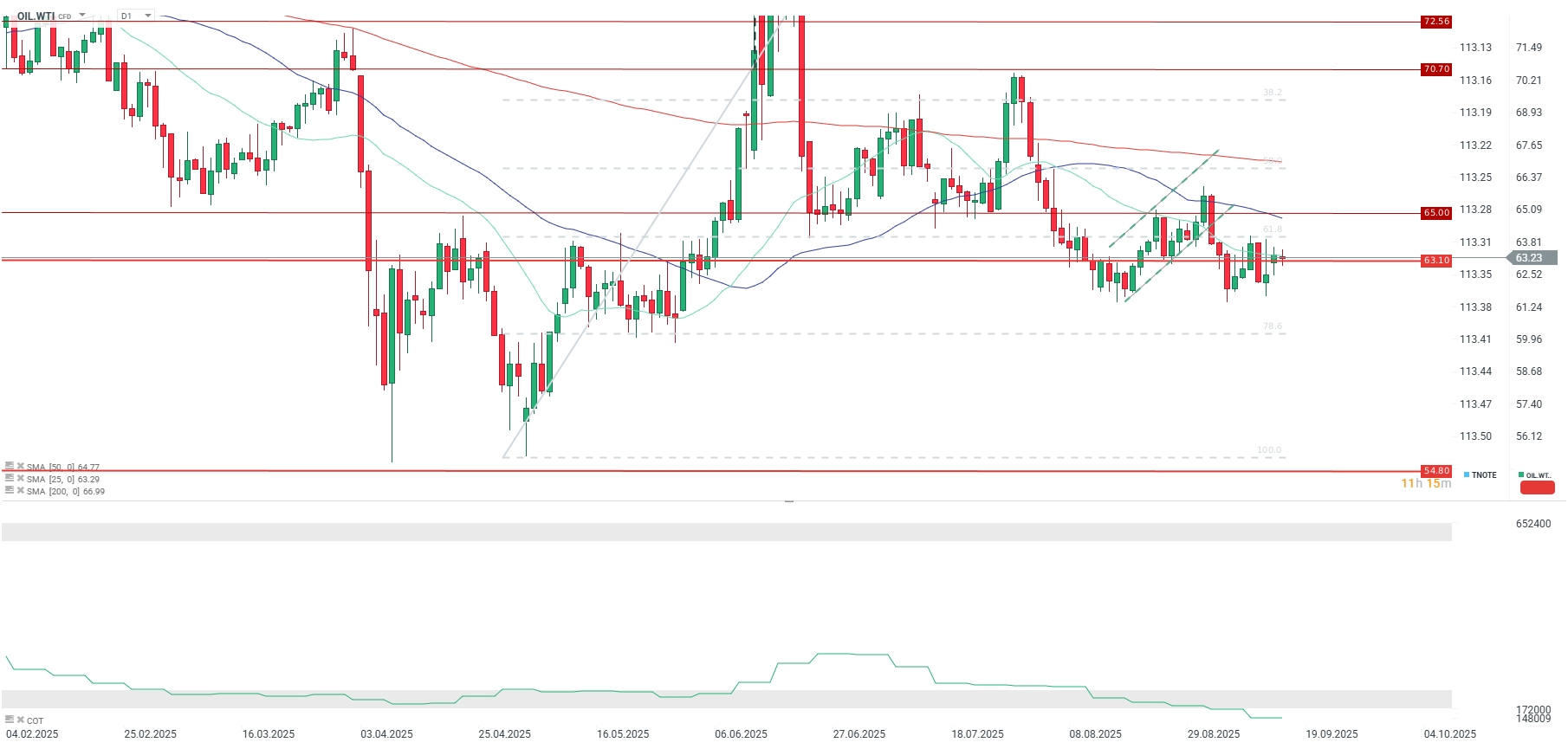 - Dalsze osłabienie amerykańskiego dolara w oczekiwaniu na cięcia stóp procentowych wspiera odbicie na rynku ropy naftowej oraz innych surowców zależnych od notowań amerykańskiego dolara