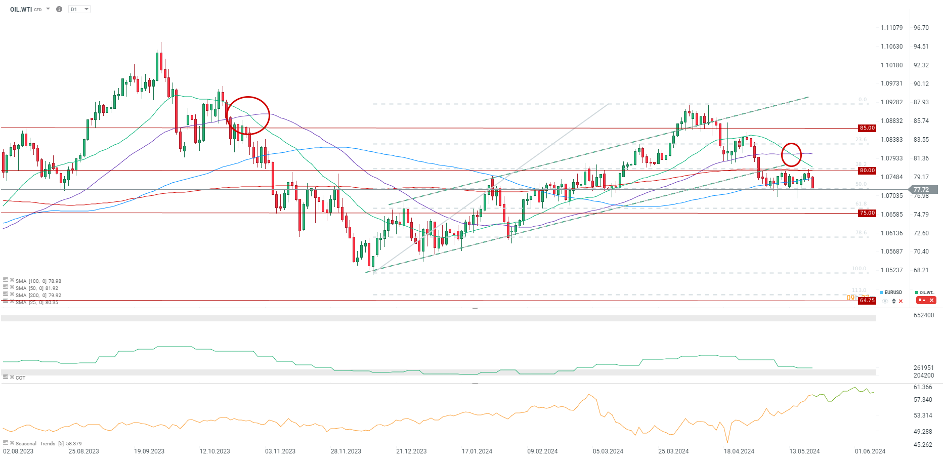 - Ropa WTI spada w okolice ważnego wsparcia w okolicach 78 USD za baryłkę