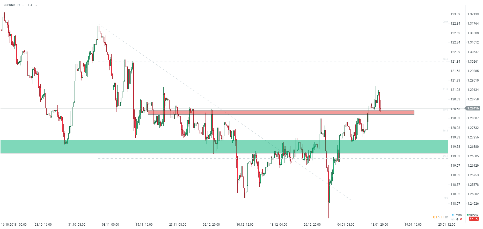 GBPUSD odnajduje wsparcie nieco powyżej poziomu 1,2800. Źródło: xStation5
