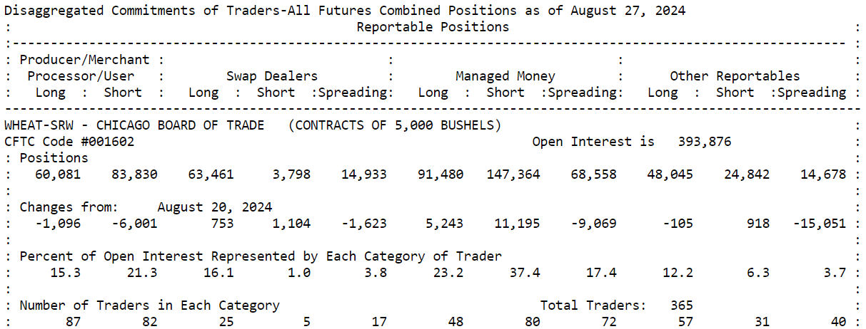 Słabsze niż oczekiwano zbiory w całej Europie podniosły grudniowe kontrakty terminowe na pszenicę w Chicago na CBOT (WHEAT). Ceny wzrosły o ponad 1% dziennie, kontynuując wzorzec "odwrócenia trendu" w obliczu poprawiających się wskaźników technicznych i fundamentalnych. Nowa struktura rynku ma potencjał, aby wywierać dalszą presję na sprzedających na krótko. Raport Commitment of Traders (CoT) z 27 sierpnia sygnalizuje pokrywanie krótkich pozycji przez spekulantów oczekujących dalszych spadków cen.