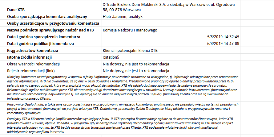 Ta publikacja handlowa jest informacyjna i edukacyjna. Nie jest rekomendacją inwestycyjną ani informacją rekomendującą lub sugerującą strategię inwestycyjną. W materiale nie sugerujemy żadnej strategii inwestycyjnej ani nie świadczymy usługi doradztwa inwestycyjnego. Materiał nie uwzględnia indywidualnej sytuacji finansowej, potrzeb i celów inwestycyjnych klienta. Nie jest też ofertą sprzedaży ani subskrypcji. Nie jest zaproszeniem do nabycia, reklamą ani promocją jakichkolwiek instrumentów finansowych. Publikację handlową przygotowaliśmy starannie i obiektywnie. Przedstawiamy stan faktyczny znany autorom w chwili tworzenia dokumentu. Nie umieszczamy w nim żadnych elementów oceniających. Informacje i badania oparte na historycznych danych lub wynikach oraz prognozy nie stanowią pewnego wskaźnika na przyszłość. Nie odpowiadamy za Twoje działania lub zaniechania, zwłaszcza za to, że zdecydujesz się nabyć lub zbyć instrumenty finansowe na podstawie informacji z tej publikacji handlowej. Nie odpowiadamy też za szkody, które mogą wynikać z bezpośredniego czy też pośredniego wykorzystania tych informacji. Inwestowanie jest ryzykowne. Inwestuj odpowiedzialnie.