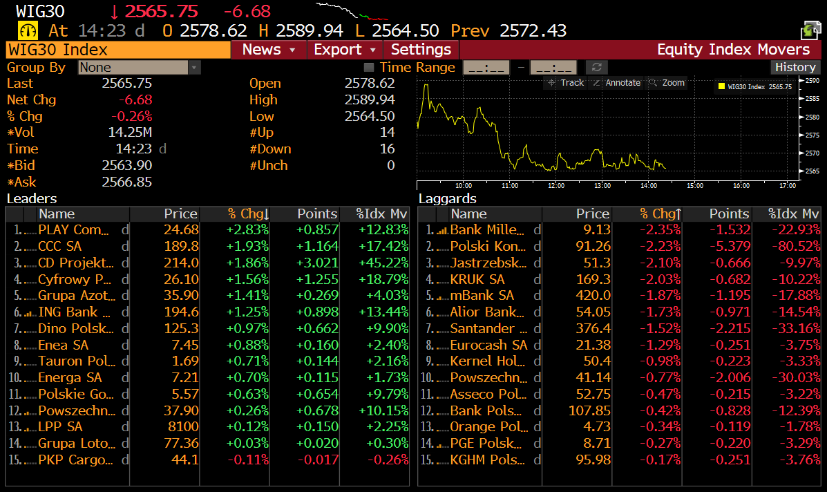 Zestawienie komponentów indeksu WIG30. Źródło: Bloomberg.