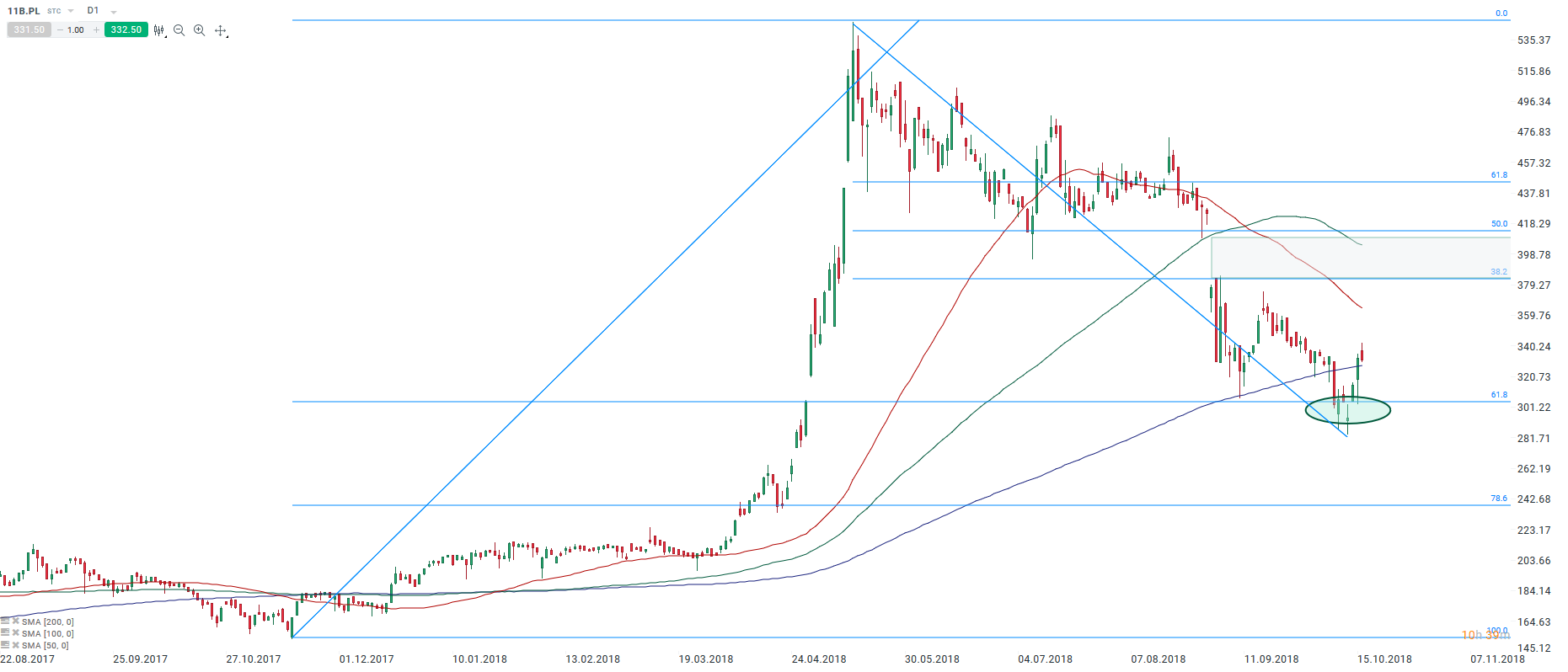 W ostatnim czasie 11bit zszedł w okolice zniesienia 61,8% wiosennego rajdu. Pierwszym oporem w przypadku rozbudowy odreagowania powinny być okolice 380-415 złotych, gdzie znajduje się luka bessy (po wynikach za II kwartał) oraz lokalne szczyty z poprzednich tygodni. Źródło: xStation5. Pozostałe najważniejsze informacje z rynku: