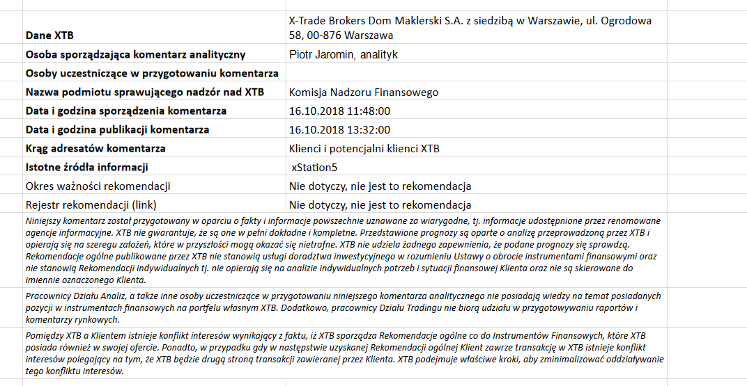 Regulamin sporządzania rekomendacji (link)Ta publikacja handlowa jest informacyjna i edukacyjna. Nie jest rekomendacją inwestycyjną ani informacją rekomendującą lub sugerującą strategię inwestycyjną. W materiale nie sugerujemy żadnej strategii inwestycyjnej ani nie świadczymy usługi doradztwa inwestycyjnego. Materiał nie uwzględnia indywidualnej sytuacji finansowej, potrzeb i celów inwestycyjnych klienta. Nie jest też ofertą sprzedaży ani subskrypcji. Nie jest zaproszeniem do nabycia, reklamą ani promocją jakichkolwiek instrumentów finansowych. Publikację handlową przygotowaliśmy starannie i obiektywnie. Przedstawiamy stan faktyczny znany autorom w chwili tworzenia dokumentu. Nie umieszczamy w nim żadnych elementów oceniających. Informacje i badania oparte na historycznych danych lub wynikach oraz prognozy nie stanowią pewnego wskaźnika na przyszłość. Nie odpowiadamy za Twoje działania lub zaniechania, zwłaszcza za to, że zdecydujesz się nabyć lub zbyć instrumenty finansowe na podstawie informacji z tej publikacji handlowej. Nie odpowiadamy też za szkody, które mogą wynikać z bezpośredniego czy też pośredniego wykorzystania tych informacji. Inwestowanie jest ryzykowne. Inwestuj odpowiedzialnie.