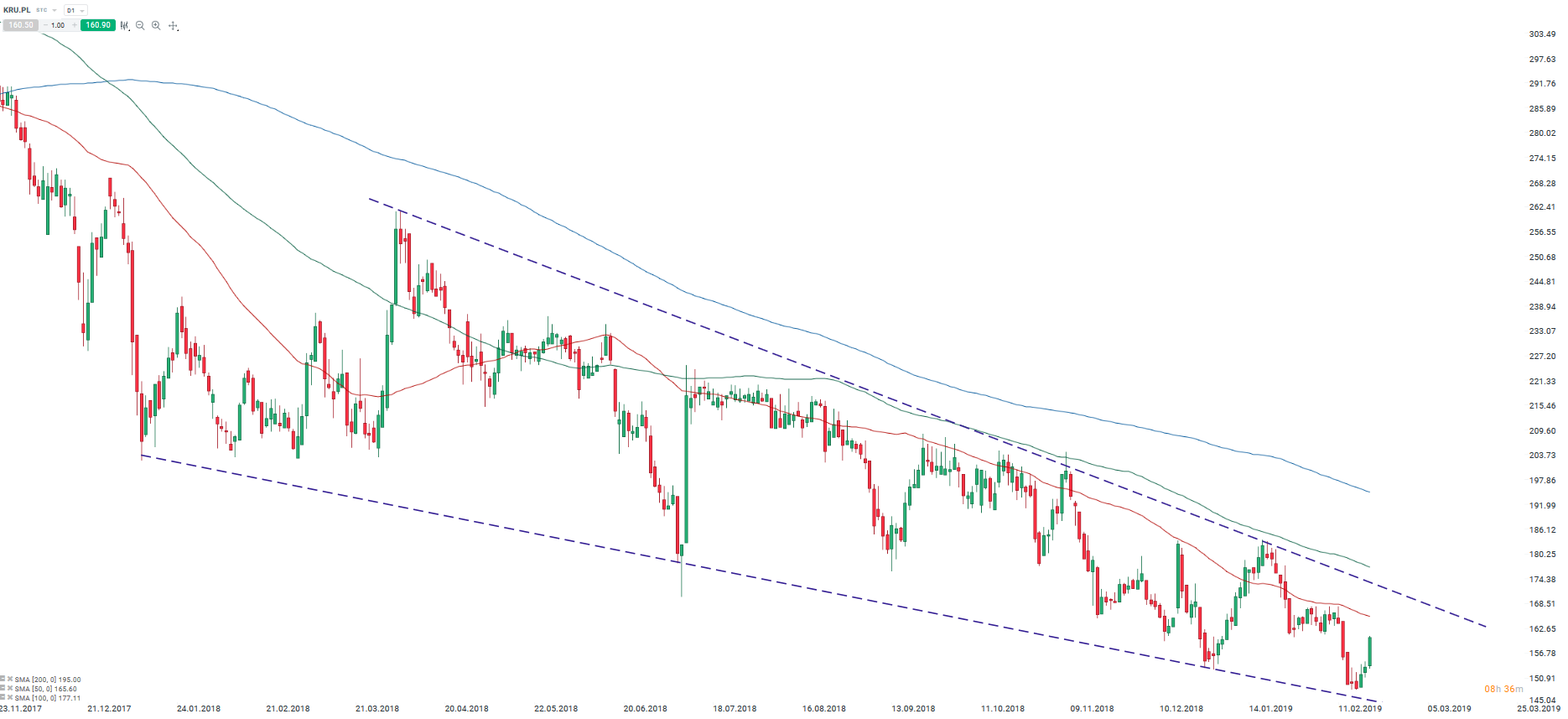 Windykator radził sobie przez ostatni rok nie najlepiej, ale w ostatnich dwóch dniach jego notowania znacząco odbiły. W szerszym ujęciu znajdujemy się w potencjalnej formacji klina zniżkującego. Spółka przedstawi raport roczny za 2018 rok już 7 marca.