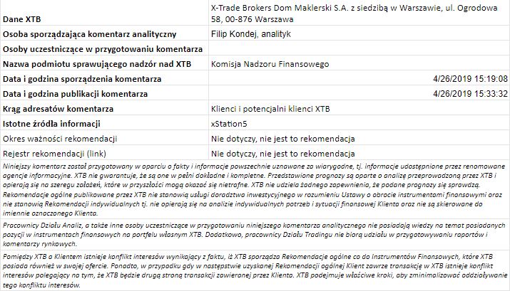 Ta publikacja handlowa jest informacyjna i edukacyjna. Nie jest rekomendacją inwestycyjną ani informacją rekomendującą lub sugerującą strategię inwestycyjną. W materiale nie sugerujemy żadnej strategii inwestycyjnej ani nie świadczymy usługi doradztwa inwestycyjnego. Materiał nie uwzględnia indywidualnej sytuacji finansowej, potrzeb i celów inwestycyjnych klienta. Nie jest też ofertą sprzedaży ani subskrypcji. Nie jest zaproszeniem do nabycia, reklamą ani promocją jakichkolwiek instrumentów finansowych. Publikację handlową przygotowaliśmy starannie i obiektywnie. Przedstawiamy stan faktyczny znany autorom w chwili tworzenia dokumentu. Nie umieszczamy w nim żadnych elementów oceniających. Informacje i badania oparte na historycznych danych lub wynikach oraz prognozy nie stanowią pewnego wskaźnika na przyszłość. Nie odpowiadamy za Twoje działania lub zaniechania, zwłaszcza za to, że zdecydujesz się nabyć lub zbyć instrumenty finansowe na podstawie informacji z tej publikacji handlowej. Nie odpowiadamy też za szkody, które mogą wynikać z bezpośredniego czy też pośredniego wykorzystania tych informacji. Inwestowanie jest ryzykowne. Inwestuj odpowiedzialnie.